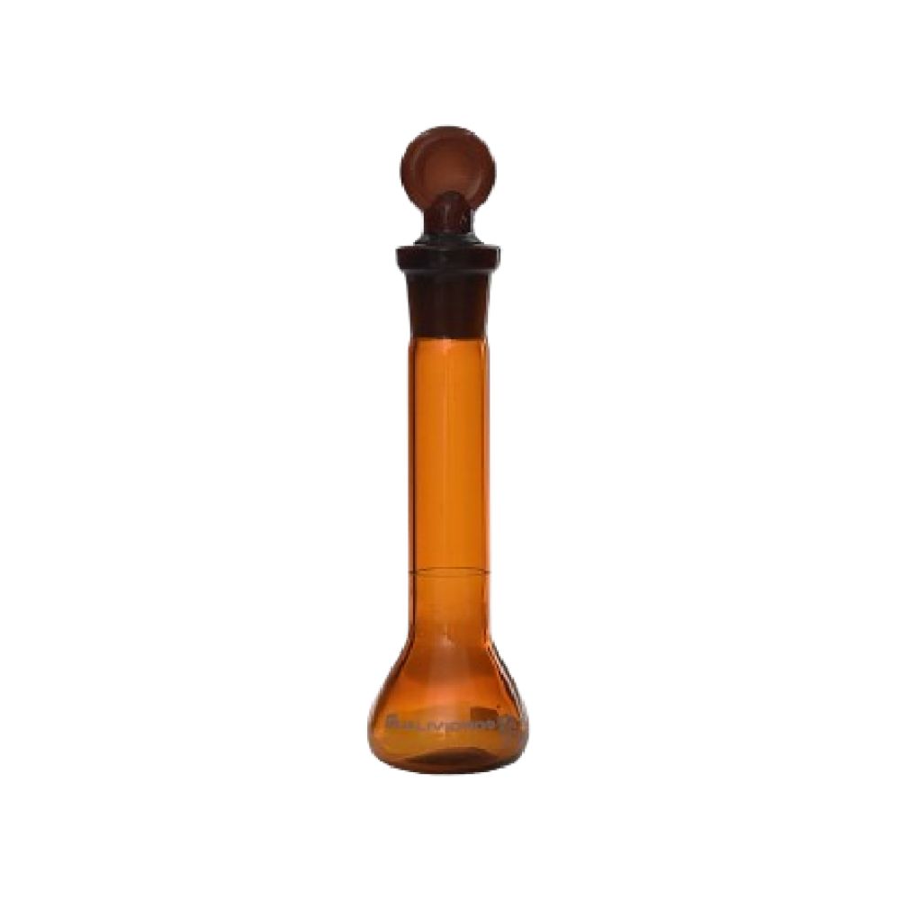 BALÃO VOLUMÉTRICO DE VIDRO CLASSE A, COR ÂMBAR, COM TAMPA DE VIDRO