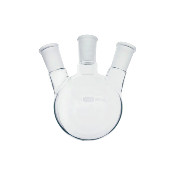 Balão de vidro, fundo redondo com 3 juntas cônica intercambiável 24/40. Material: Vidro borossilicato 3.3 |