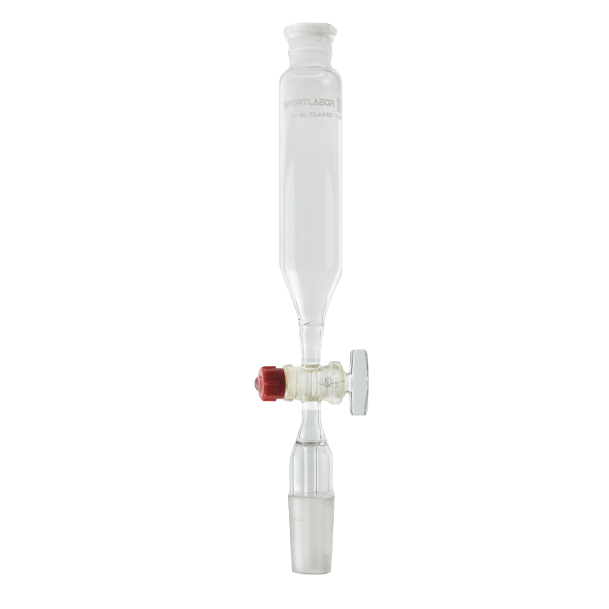 Funil de separação ou ainda ampola de decantação, é uma peça de vidraria de laboratório usada para separar líquidos imiscíveis de diferentes densidades. Com torneira de vidro Material : Vidro |