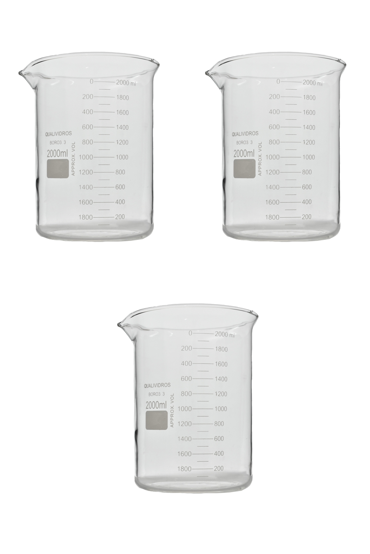 KIT 3 COPO BECKER FORMA BAIXA DE VIDRO GRADUADO, GRIFFIN, CAP. 2000ML