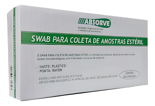 SWAB PARA COLETA DE AMOSTRAS ESTERIL HASTE DE PLSTICO PONTA RAYON