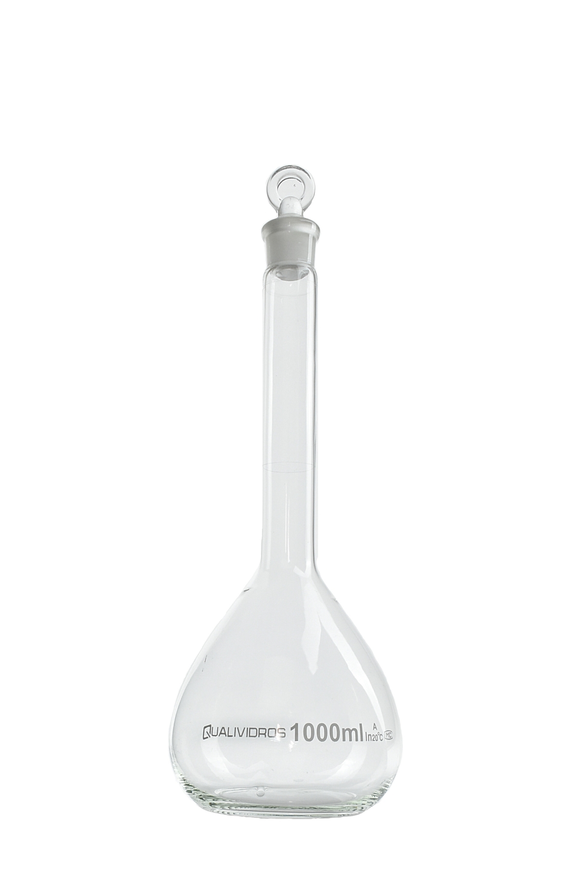 BALÃO VOLUMÉTRICO DE VIDRO INCOLOR CLASSE A, COM TAMPA DE VIDRO