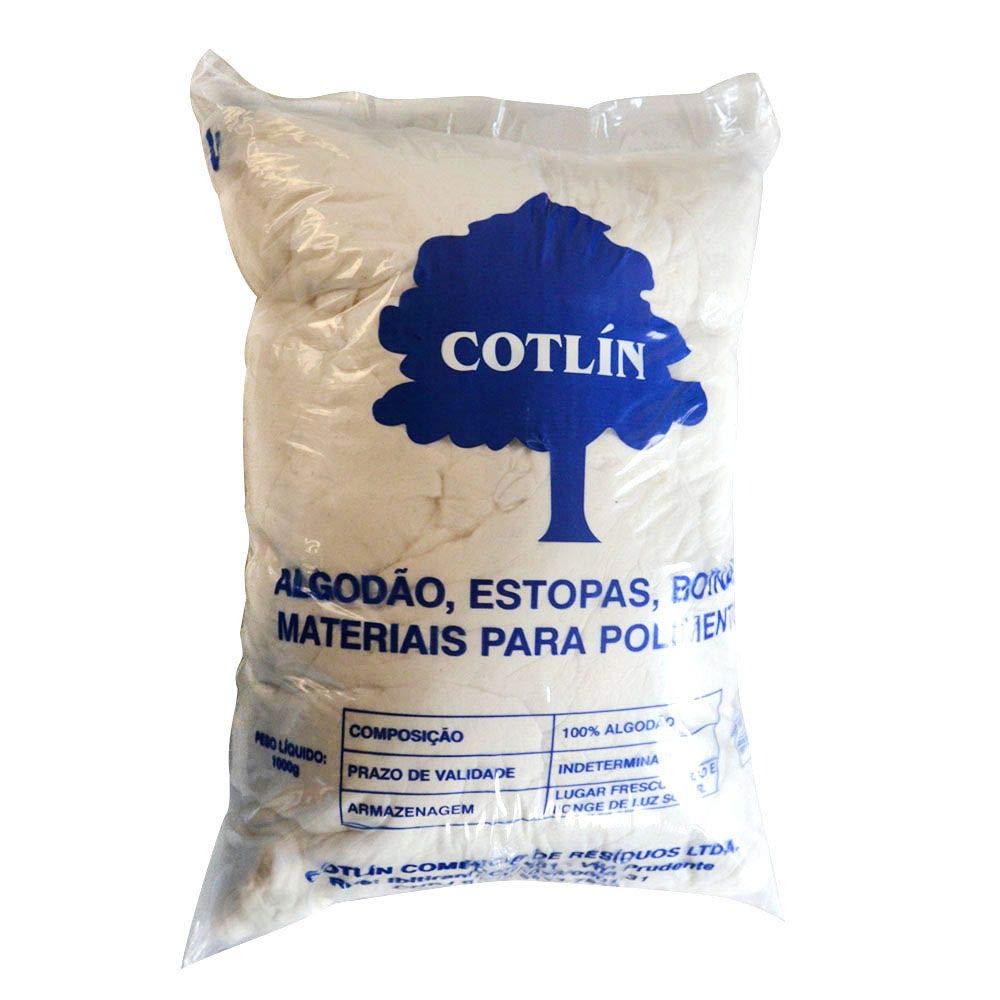 Algodão hidrófobo 100% de fibras algodão cru, impermeável. Baixo teor de impurezas. Utilizado em Laboratórios de Análises e Pet Shop. |