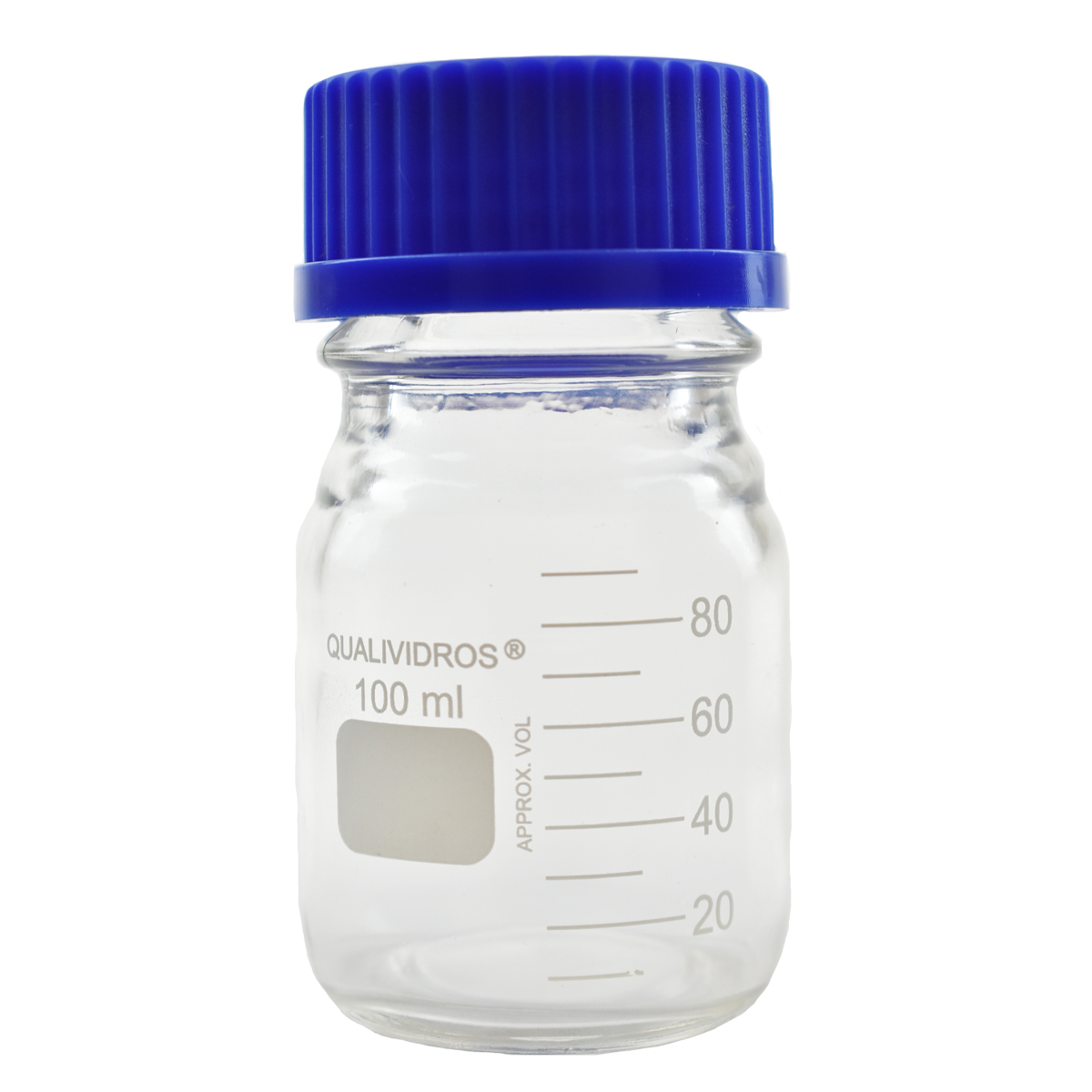 FRASCO REAGENTE VIDRO NEUTRO INCOLOR COM TAMPA DE ROSCA AZUL