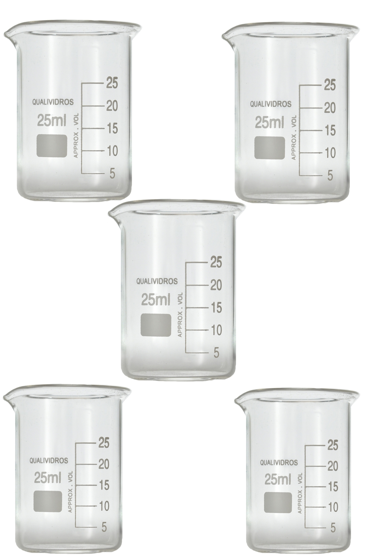 KIT 5 COPO BECKER FORMA BAIXA DE VIDRO GRADUADO, GRIFFIN, CAP. 25ML