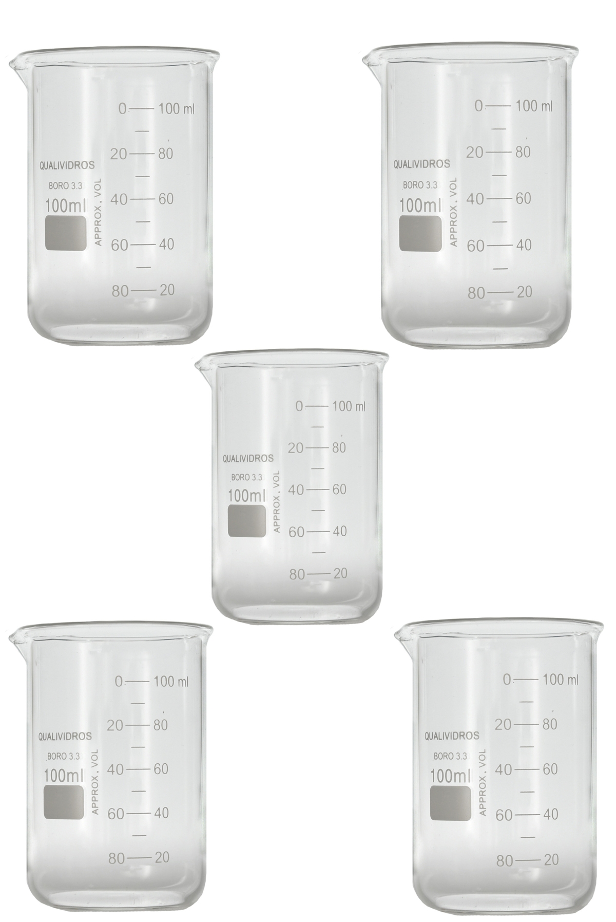 KIT 5 COPO BECKER FORMA BAIXA DE VIDRO GRADUADO, GRIFFIN, CAP. 100ML