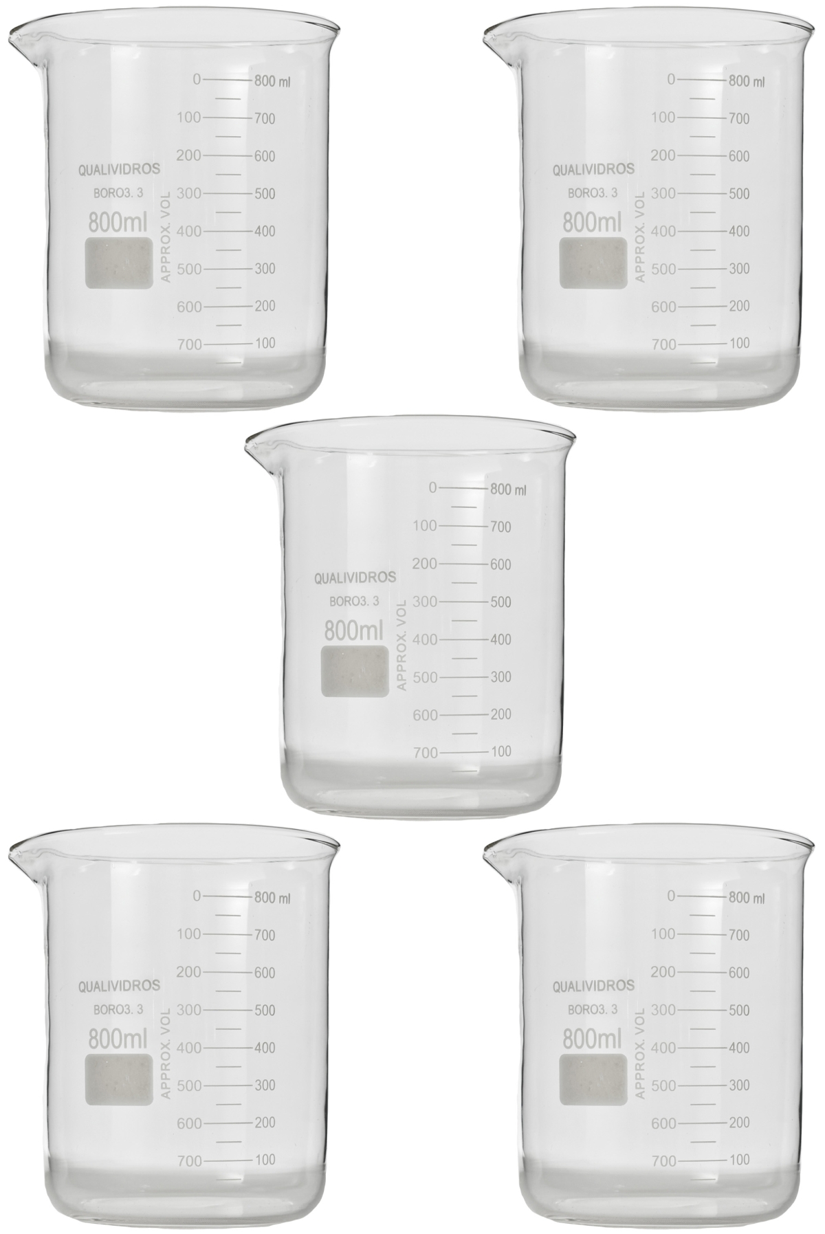 KIT 5 COPO BECKER FORMA BAIXA DE VIDRO GRADUADO, GRIFFIN, CAP. 800ML