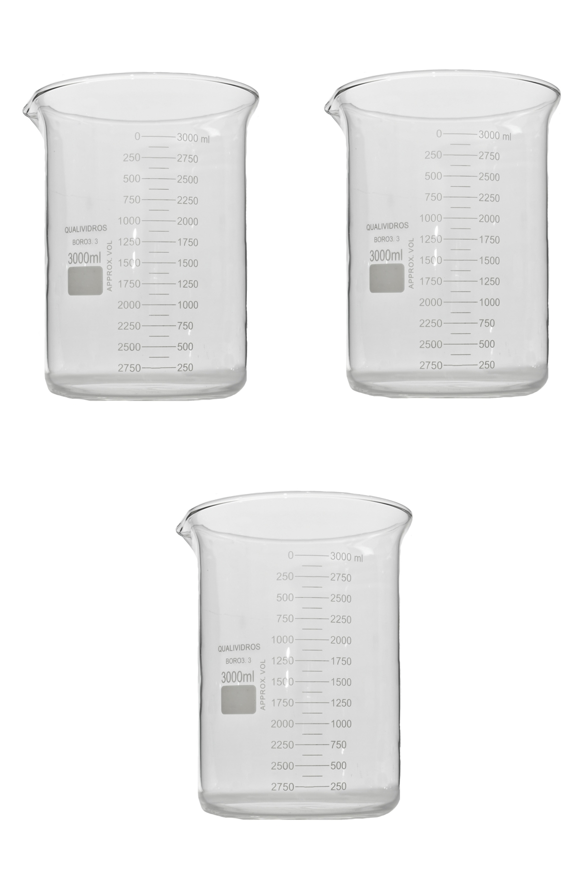 KIT 3 COPO BECKER FORMA BAIXA DE VIDRO GRADUADO, GRIFFIN, CAP. 3000ML