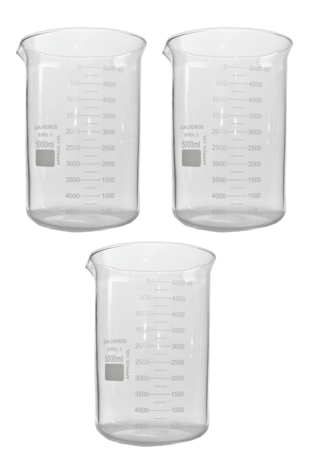 KIT 3 COPO BECKER FORMA BAIXA DE VIDRO GRADUADO, GRIFFIN, CAP. 5000ML