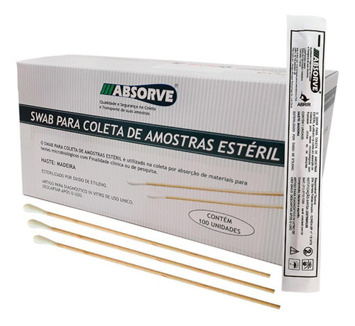 SWAB PARA COLETA DE AMOSTRA ESTÉRIL HASTE MADEIRA PONTA DE ALGODAO