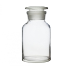 Frasco reagente de vidro, boca larga, rolha de vidro esmerilhada intercambiável. |