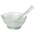 Gral de vidro com pistilo. Empregado na trituração de pequena quantidade de pós, na mistura de pós já triturados e na formulação de suspensões, emulsões e pomadas. |